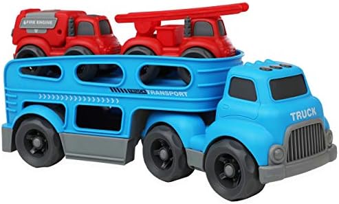 Iq Toys Car Carrier Truck Toy For Toddlers And Kids Toy Vehicle Playset Blue Transport Truck With Toy Fire Truck And Ladder Truck Durable Construction Bpa Free Plastic Amazon Sg Toys